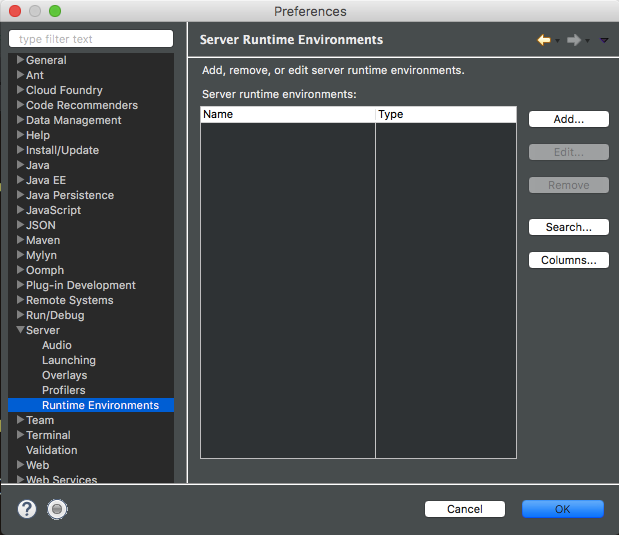 Eclipse의 설정에서 Server > Runtime Environments 에 들어가보자.