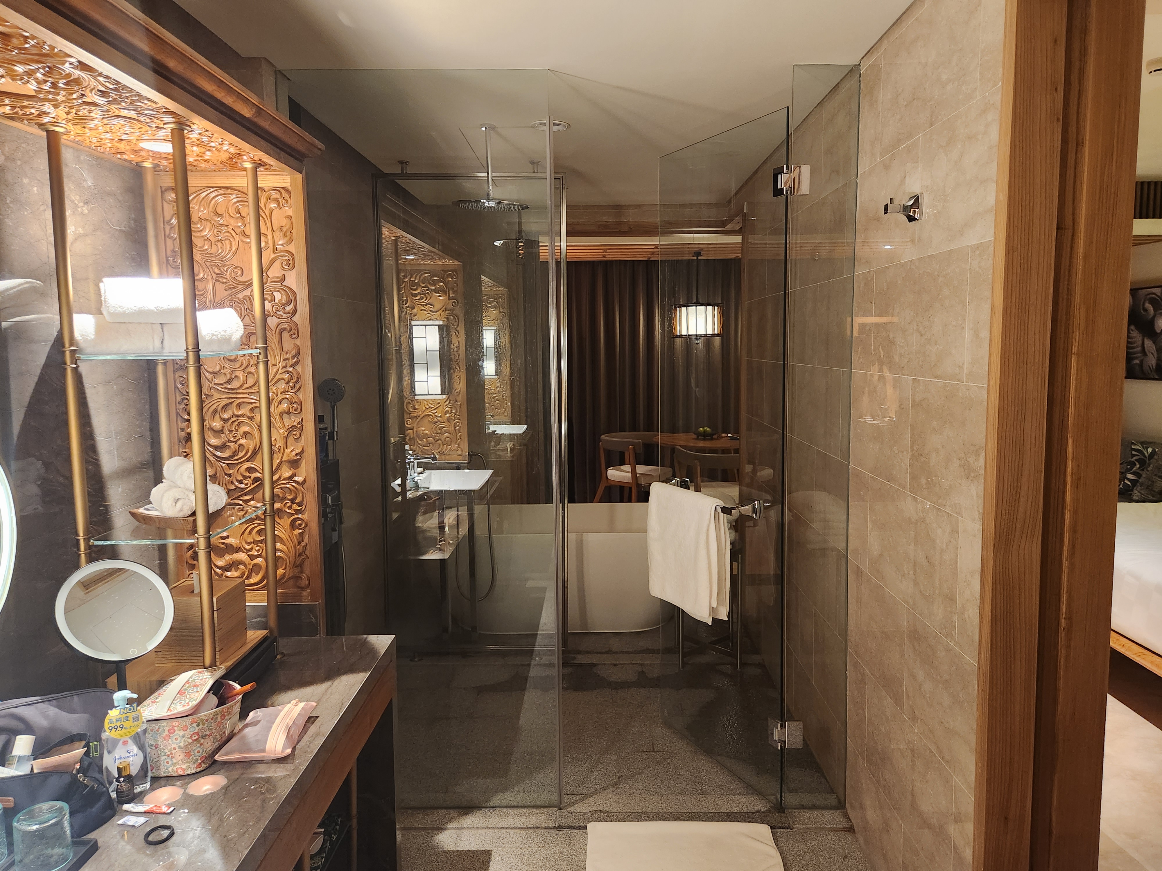 5성급 호텔은 처음가본 촌놈인지라 5성급은 다 이런줄 알았는데 그런건 아니였고요. 지은 지 한달도 안되서 그런거였습니다.. ! 방에 입장하면 침대부터 각종 자재까지 새것의 냄새가 납니다. 그렇다고 새집 알레르기 발병될 정도로 냄새가 강하지는 않구요.