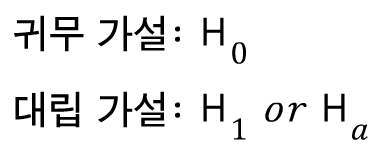 귀무 가설과 대립 가설을 기호로 표현하면 아래와 같습니다.