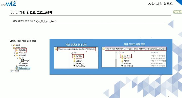 파일 업로드(<input type="submit">, com.oreilly.servlet.multipart객체, 업로드한 파일명을 불러오는 getFilesystemName, 클라이언트가 업로드한 파일명을 불러오는 getOriginalFileName)