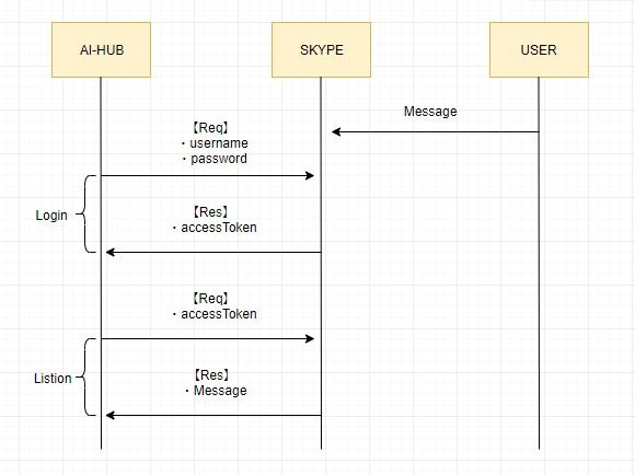 라인과 같은 경우는 외부 url(웹훅)로 메시지를 직접 쏴준다. 즉, 라인서버가 외부에 리퀘스트를 보내면 외부에서 라인서버로 레스폰스를 해주는 일반적인 방식이다. 그러나 스카이프 비즈니스 어카운트의 경우 위와같은 플로우를 따른다.