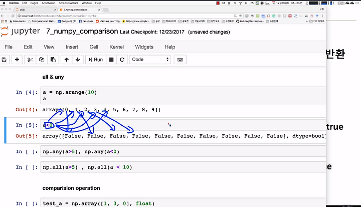 3-6.Numpy Session( comparision:> = < , zny(), all(), where, argmax,argmin)