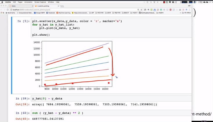 ・한점x - 러닝레이트a * 한점x에서의 기울기