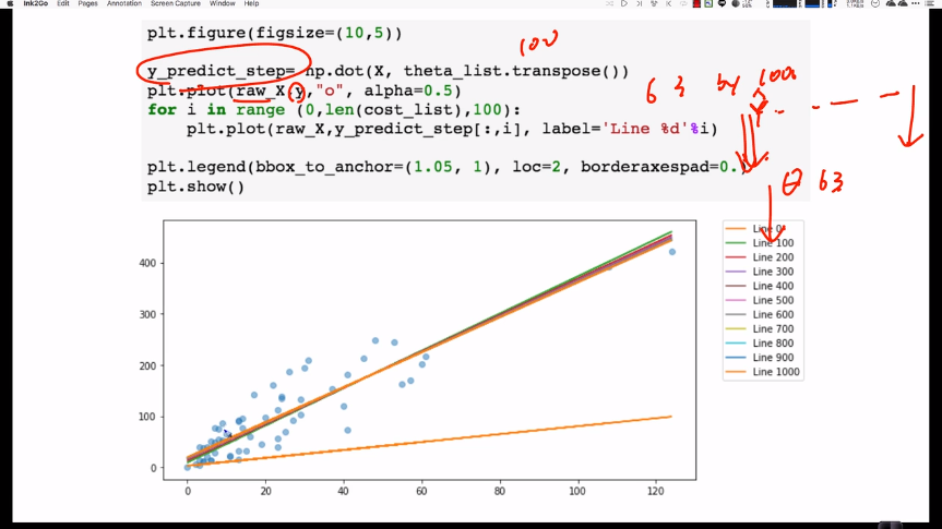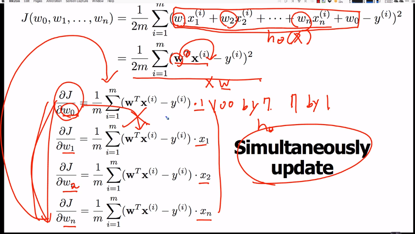theta[i] = theta[i] - (alpha/m) * np.sum((y_prediction - y) * X[:,i])
