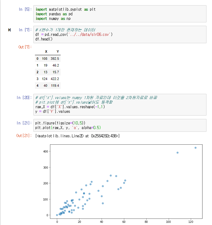 7-6. Linear regression implementation wtih Numpy, 7-7. Multivariate linear regression models, 7-8. Performance measure for a regression model(mean absolute error, RMSE, R square)