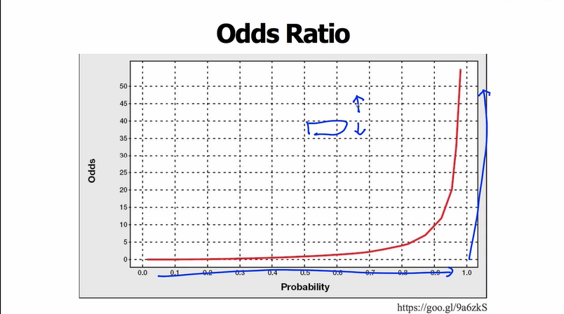 ・Odds Ratio에 자연로그를 씌어주면 위와 같은 그래프 모양이 그려진다.