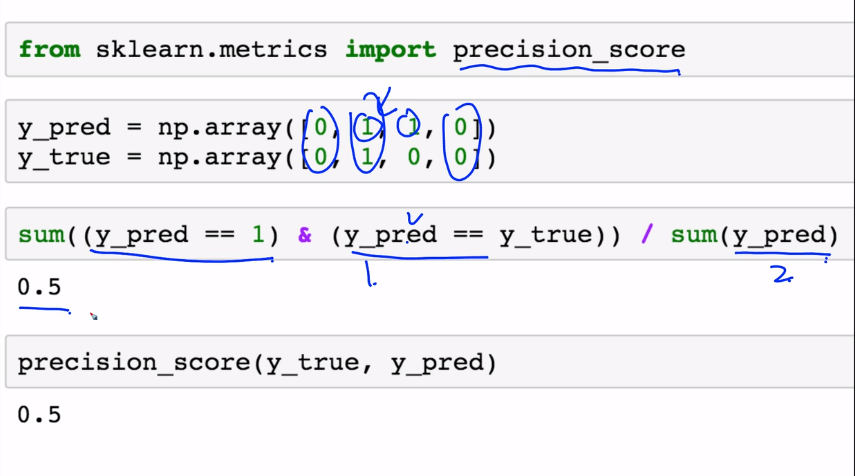 정밀도로 계산하면, 0/1라는 결과가 나오고