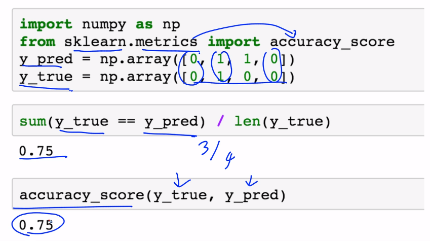 정확도로 계산하면, 18/20이라는 결과가 나온다.