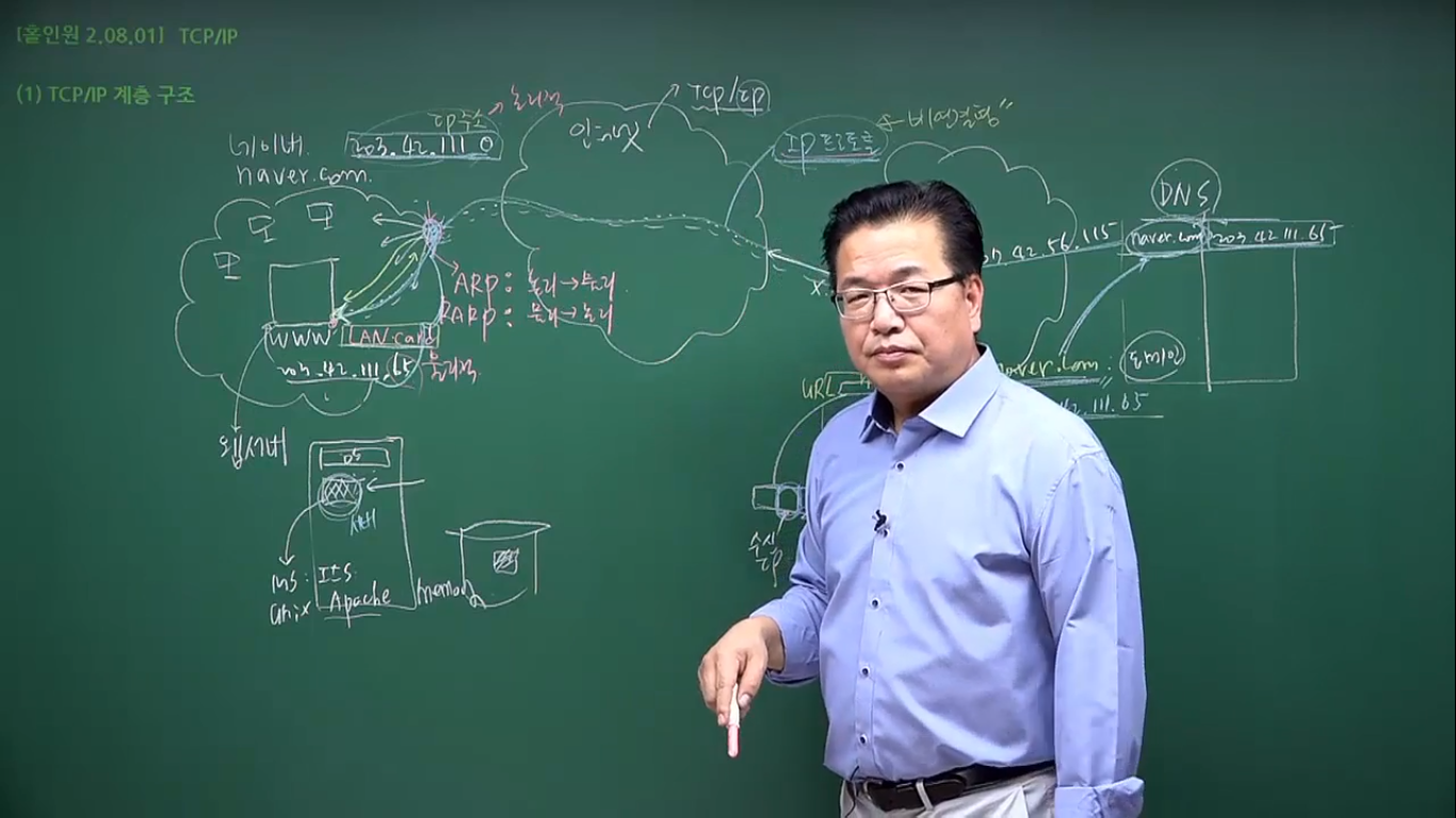 # 클라이언트 > http프로토콜 > 인터넷 > ip프로토콜 > 로컬 네트워크 > ARP프로토콜 > 브로드캐스팅 > 해당 서버에 닿음 > 포트호출하여 프로그램에 요청 전달