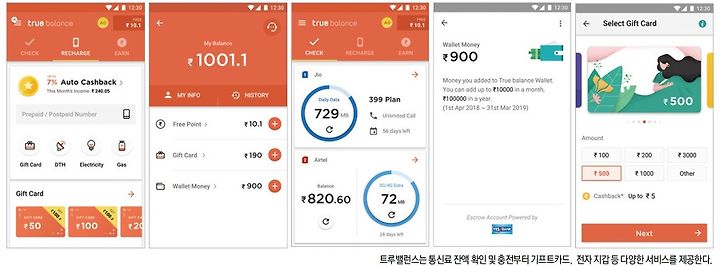 이러한 환경에서 ‘인도 국민 앱’을 만든 한국 업체가 있다. 바로 밸런스히어로다. 밸런스히어로는 2015년 초 이동통신 데이터 사용량과 잔여 데이터양, 잔여 통화량 등 통신료 잔액을 확인할 수 있는 애플리케이션 ‘트루밸런스’를 선보였다. 이후 밸런스히어로는 통신료 충전 - 외상 및 대출 - 기프트카드 - e커머스 - 보험 - 캐시백 등으로 서비스를 늘려나갔다. 앱은 폭발적인 인기를 끌었다. 출시 다음 해 다운로드 수가 1000만 건을 넘어서더니 2017년 9월 5000만 건, 현재 7600만 건을 돌파하며 승승장구하고 있다. 밸런스히어로는 이를 기반으로 현재까지 700억 원가량을 투자받았다.