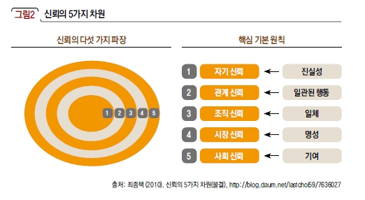 <그림 2>와 같이 신뢰는 자기신뢰, 관계신뢰, 조직신뢰, 시장신뢰, 사회신뢰의 총 5개 차원으로 구성된다.8 화해는 화장품 성분을 둘러싼 ‘정보 불균형’이라는 산업적, 사회적 과제를 해소함으로써 소비자들의 니즈를 충족시키겠다는 창업 당시의 전략과 자세를 일관되게 고수해왔다. 앱이 출시된 이후로 업데이트만 99번을 시행하며 변화하는 제품과 산업 환경에도 변함없이 소비자들의 ‘니즈’에 응하면서 소비자들로부터 관계 신뢰를 획득할 수 있었다.