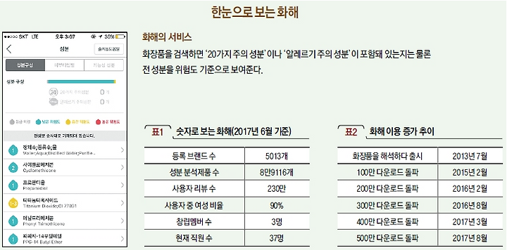 화장품에 들어 있는 성분이 위험하지는 않은지, 알레르기를 유발하지는 않는지 친절하게 해석해주며 500만 건 이상의 다운로드를 이끌어낸 앱 ‘화장품을 해석하다(이하 화해)’. 화해의 성공은 다음과 같은 시사점을 안겨준다.