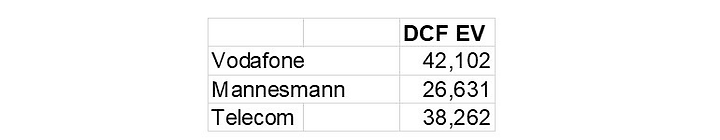 Table 9: Vodafone, Mannesmann and Telecom EV comparison