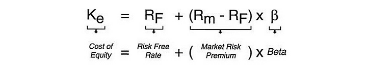 Note that the cost of equity, kE has been obtained using the Capital Asset Pricing Model, CAPM.