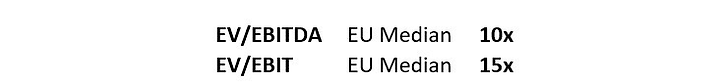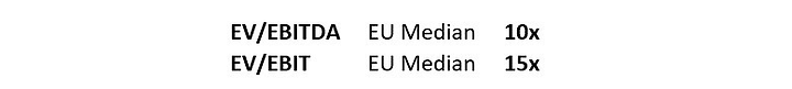 As mentioned, two EV multiples have been used, with EU median values shown below: