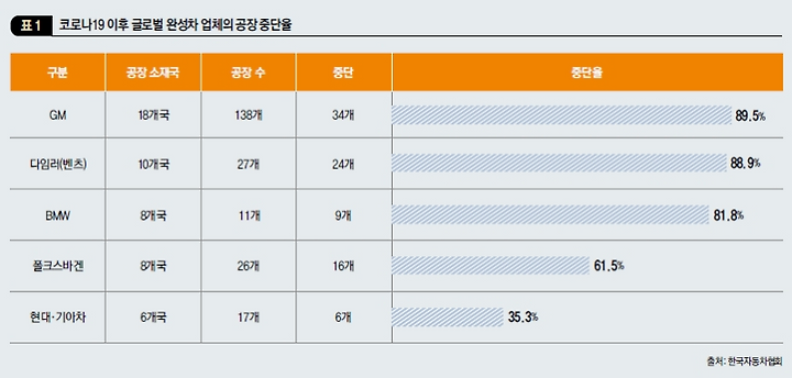 현재의 글로벌 위기와 리쇼어링을 우리 산업에 기회로 인식해야 한다. ‘K-방역’으로 우리의 공급 역량은 코로나19 사태에도 중단 범위를 최소화해 정상적으로 가동할 수 있음을 세계적으로 입증했다. (표 1) 한국은 글로벌 공급망의 중단을 우려하는 많은 글로벌 기업에 매력적인 시장이 아닐 수 없다. 안정적인 공급망 가동이 중요해진 만큼 우리나라가 글로벌 공급망의 새로운 거점이 될 가능성이 충분하다. 이 같은 잠재력을 현실화할 수 있도록 품질 관리, 제도적인 부분이 뒷받침돼야 한다.