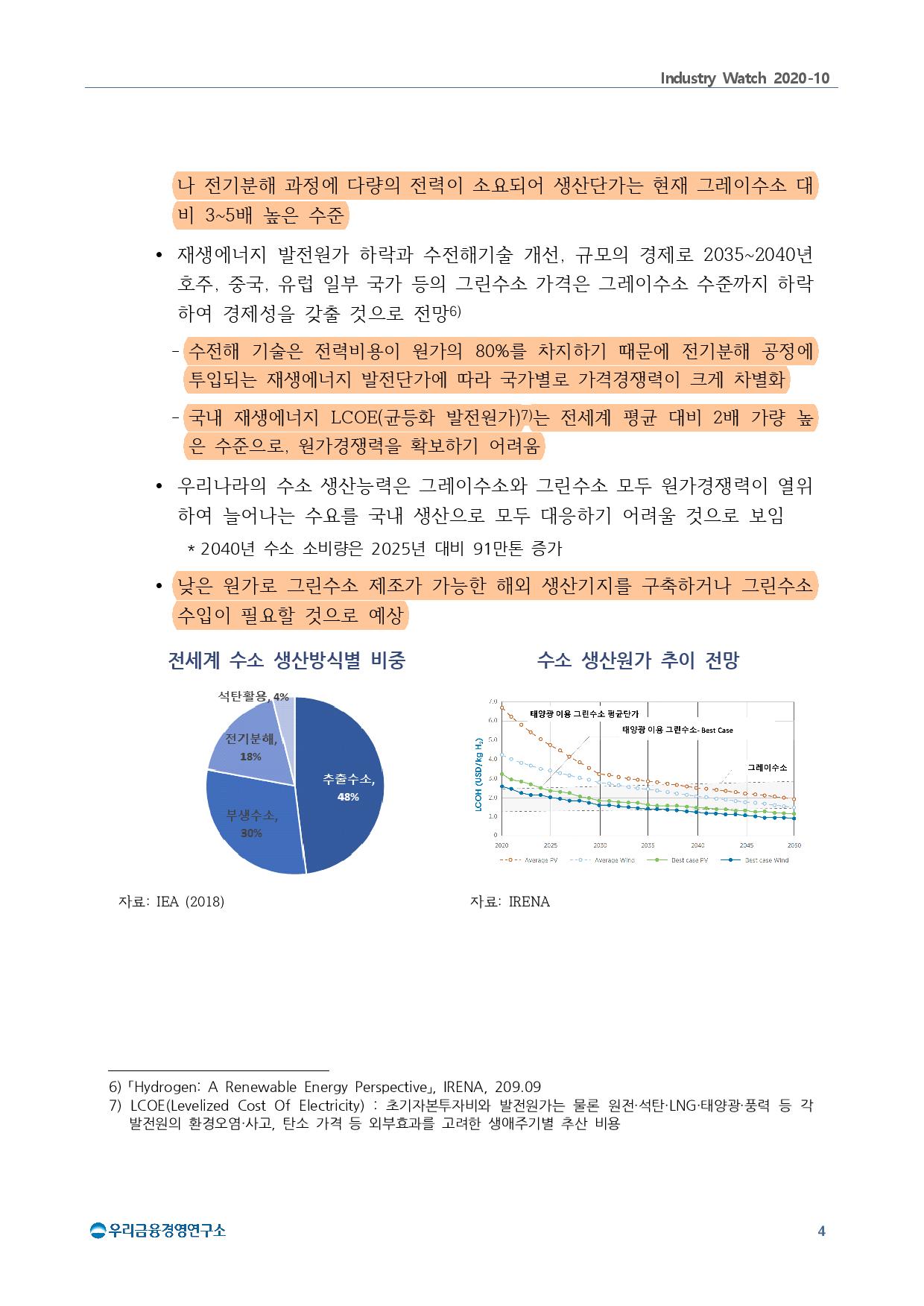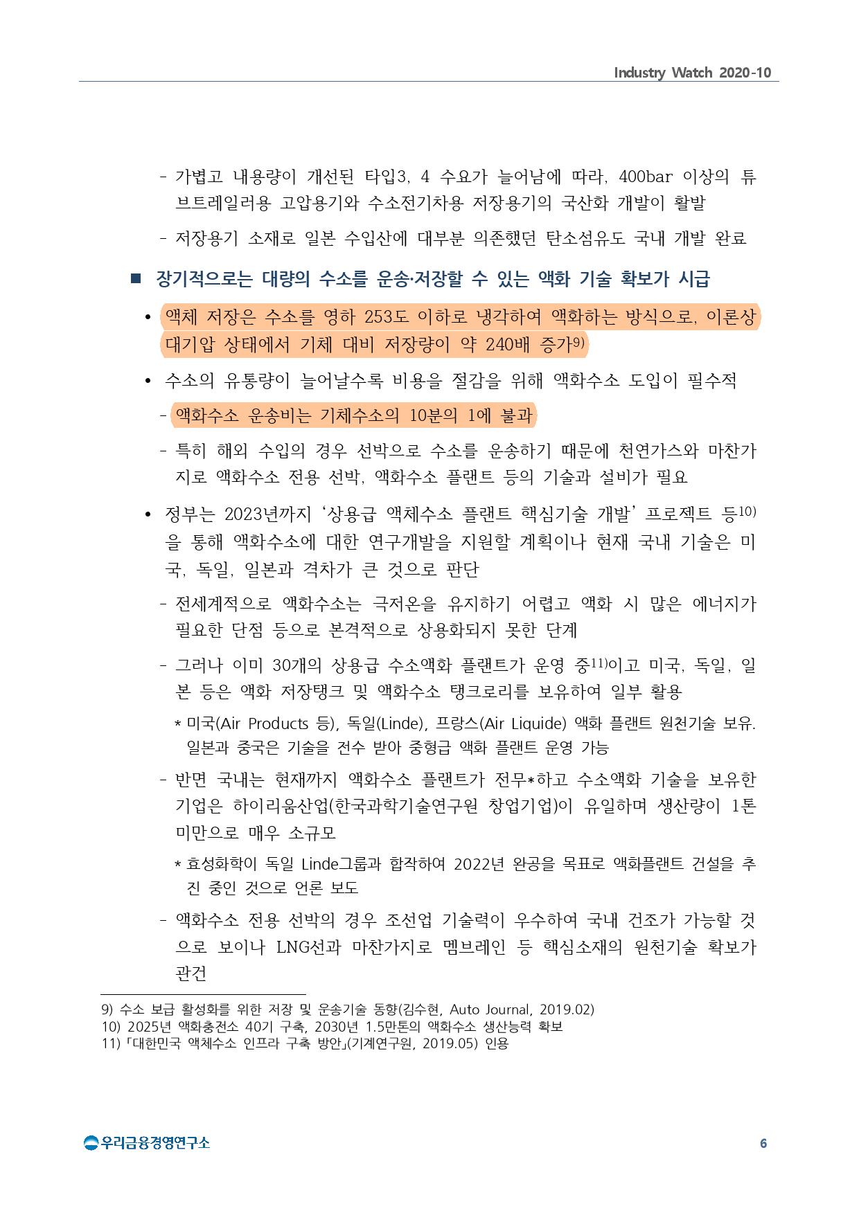 - [생산] 민·관의 수소 생산시설 투자가 늘어날 전망이나 그레이수소 위주인 점이 한계