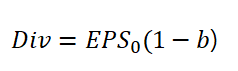 이때, 배당금 Div는 위와 같은 식으로 나타낼 수 있는데요. 어떤 의미인지 볼까요. b는 자금보유성향 입니다. 따라서, (1-b)는 배당성향이 됩니다. EPS는 주당 당기순이익이므로, 주당 당기순이익에 배당성향을 곱하면, 주당 배당금이 되겠네요.